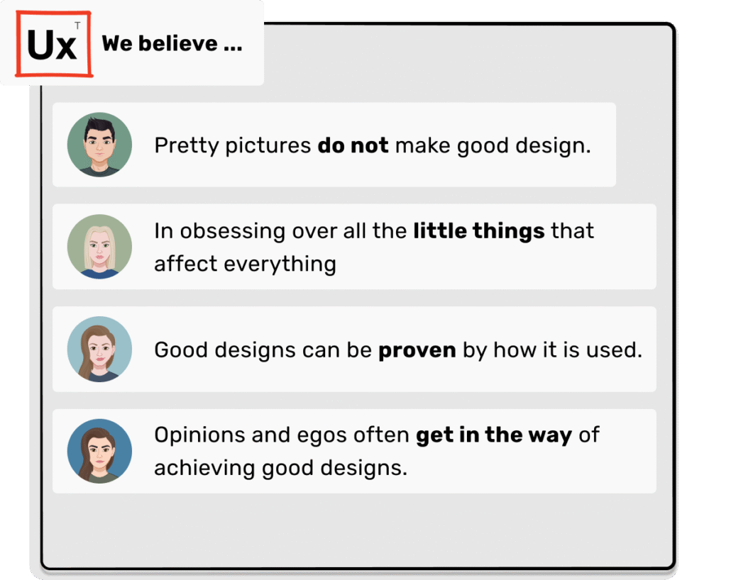 UX Team is made up of creative scientists who believe in using evidence to drive all design decisions.