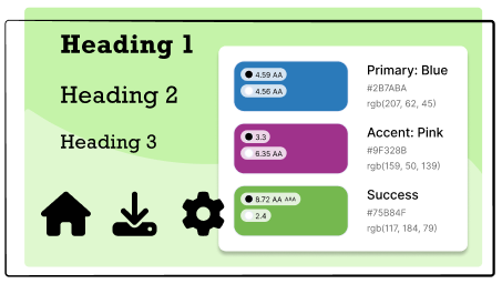 Style guides are built using your brand guidelines to define the system’s core styles, like color and typography. These styles are used when creating all other elements to ensure consistency and cohesiveness across the system.