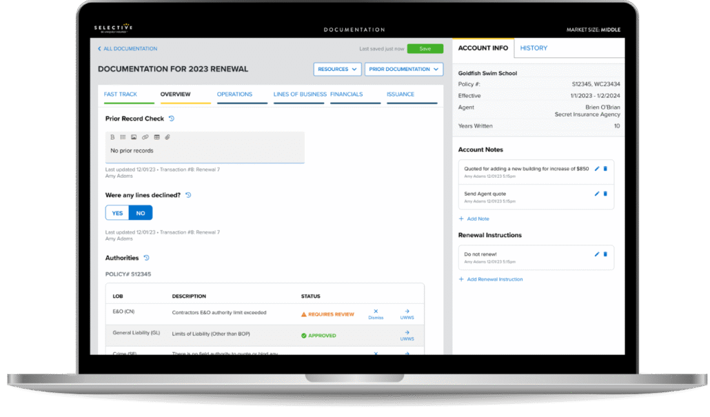 When making underwriting decisions, it’s important that the reasoning and justification is documented accurately and consistently. Prior to our redesign, Selective handled underwriting documentation using Microsoft Word documents.