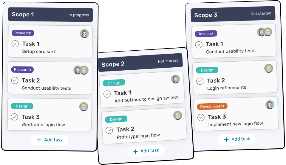 You can shift priorities at any time, giving you ongoing UX support that adapts to your product roadmap.